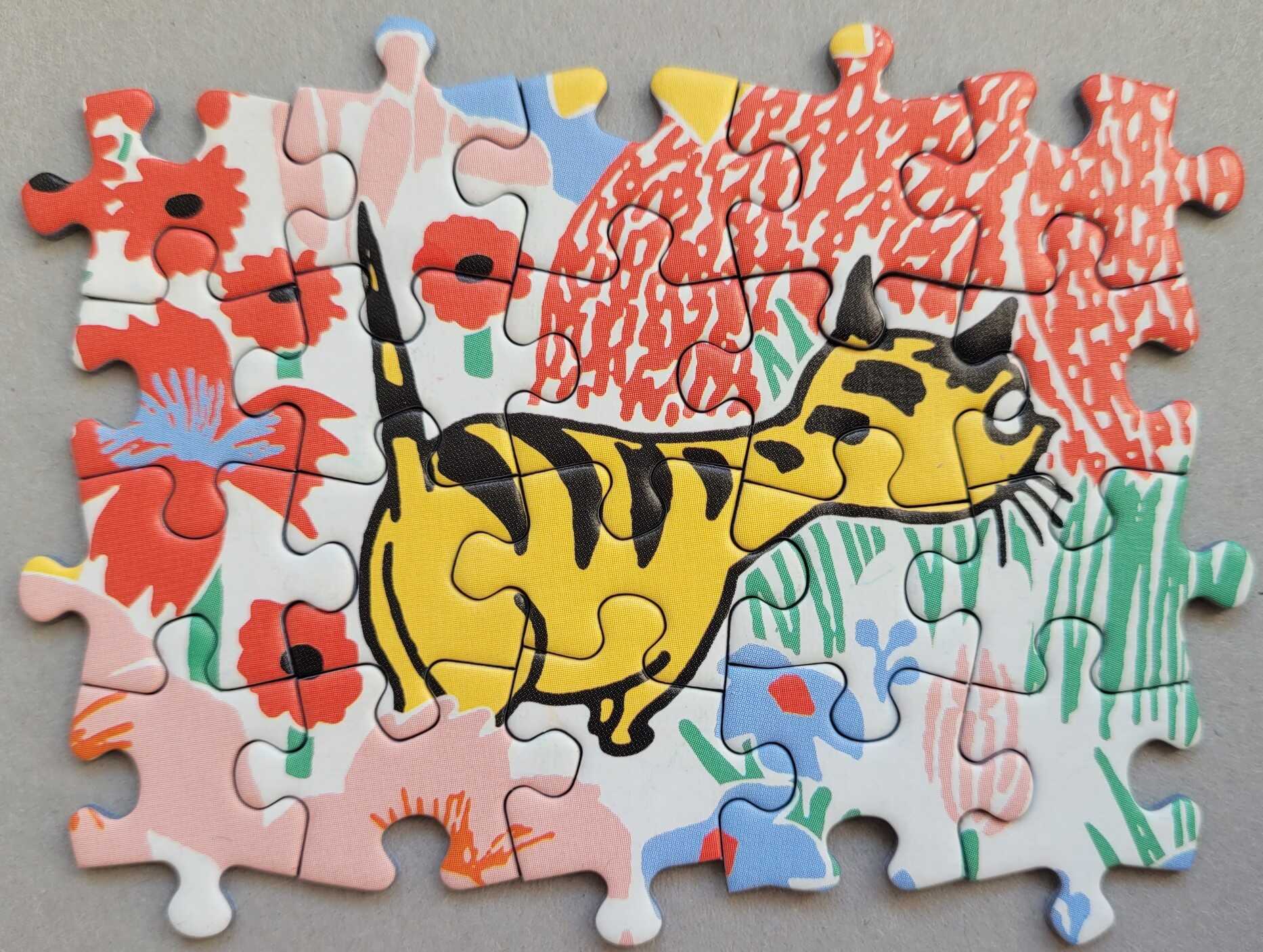 Obrazek przeuroczy i klimatyczny. Jednak układając można dostać oczopląsu od szukania "które ciapnięcie w którym miejscu", ale przynajmniej jest zabawnie i wiadomo czego szukać 😀 Tylko przeszkadzały mi przesunięcia w puzzlach, nie wszystkie elementy są do siebie ładnie spasowane, niektóre mają całkiem duże "schody".