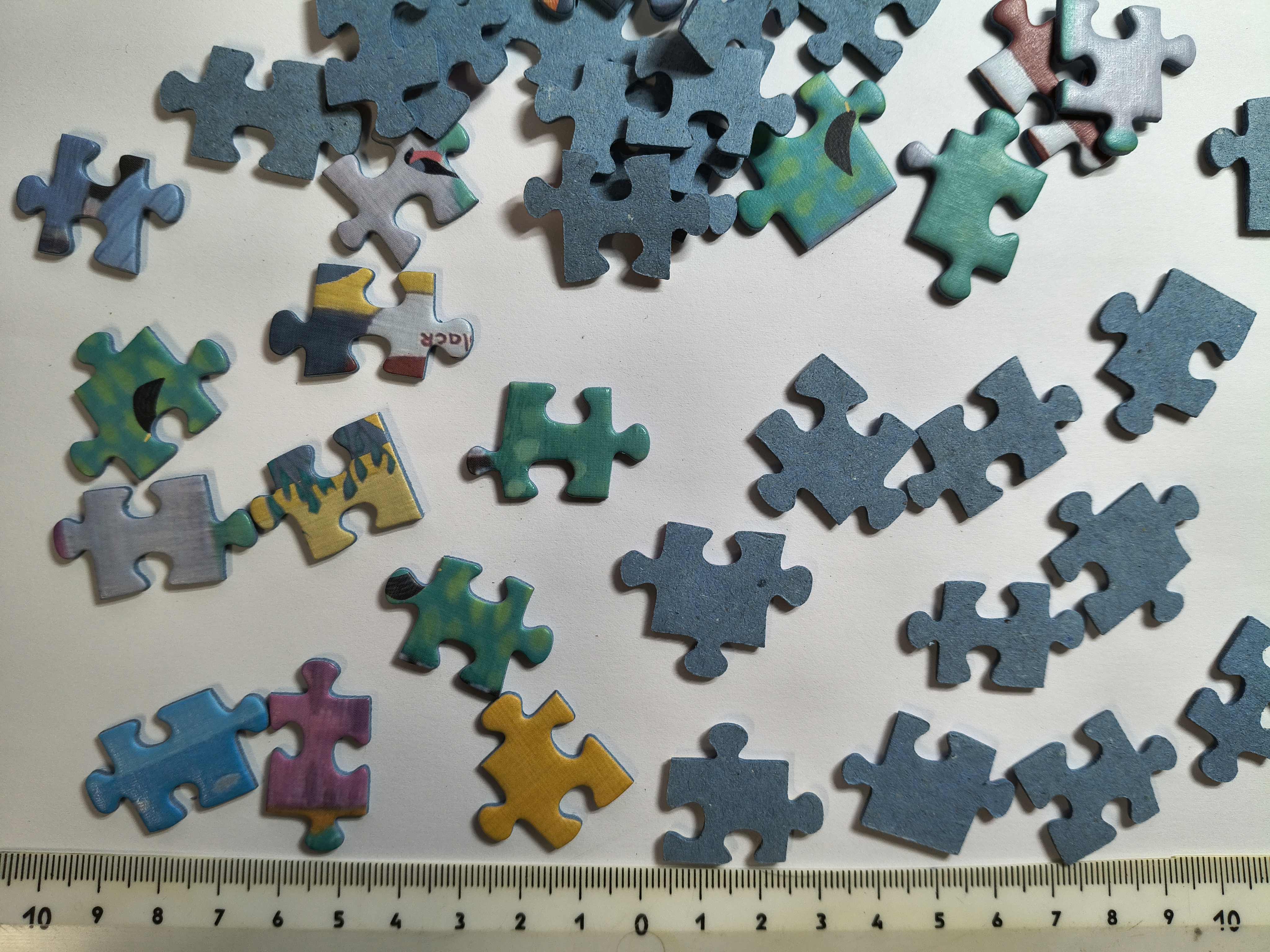 Świetne puzzle, grube, dobrze spasowane, ładne, pastelowe kolory z matowym wykończeniem.